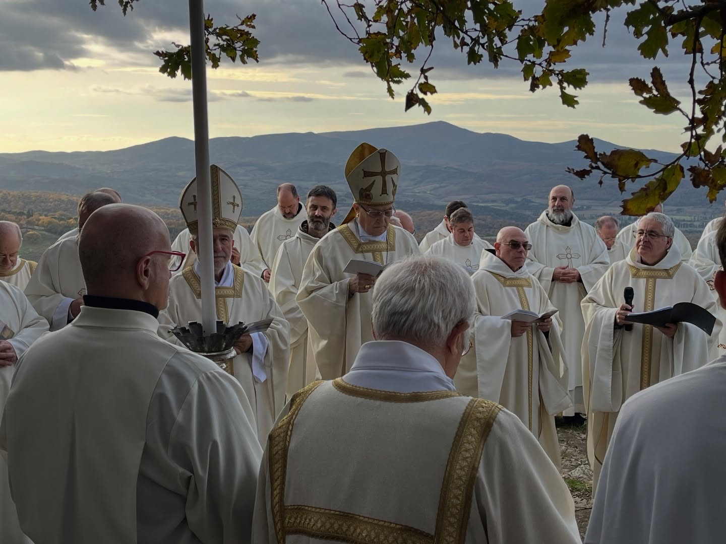 Alla celebrazione hanno partecipato oltre 400 fedeli, segno di un’ampia vicinanza e affetto verso il monastero. A presiedere il solenne rito è stato il vescovo di Grosseto e di Pitigliano, Bernardino Giordano; concelebranti principali Rodolfo Cetoloni, vescovo emerito di Grosseto, e Franco Agostinelli, vescovo emerito di Prato e già pastore della diocesi grossetana. Con loro altri 25 sacerdoti che hanno concelebrato in una liturgia intensa e ricca di simboli.