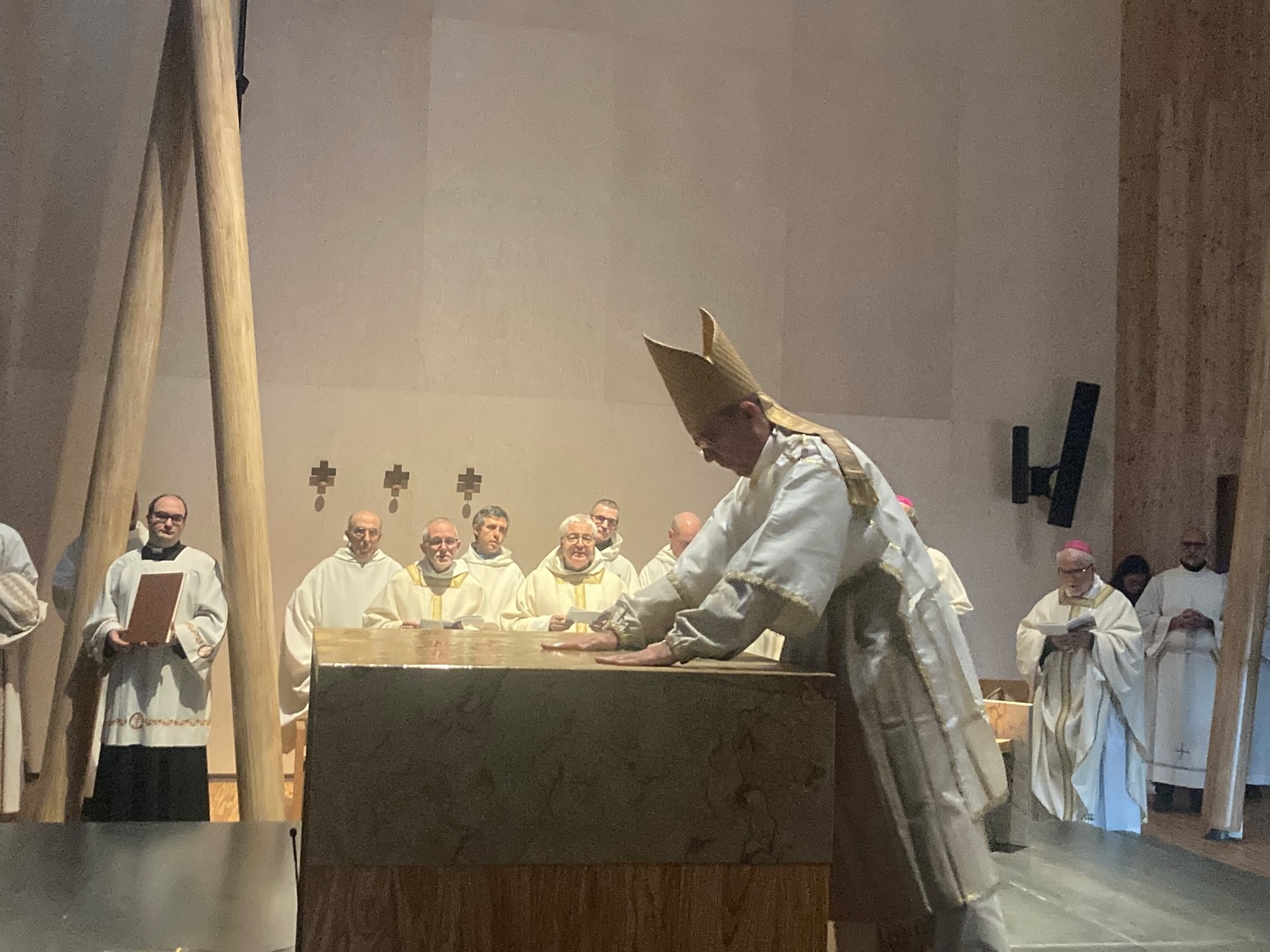 Al termine dei riti di comunione, l’Eucaristia è stata riposta solennemente nel nuovo tabernacolo, completando così il rito di dedicazione e segnando l’inizio della vita liturgica della nuova chiesa monastica.