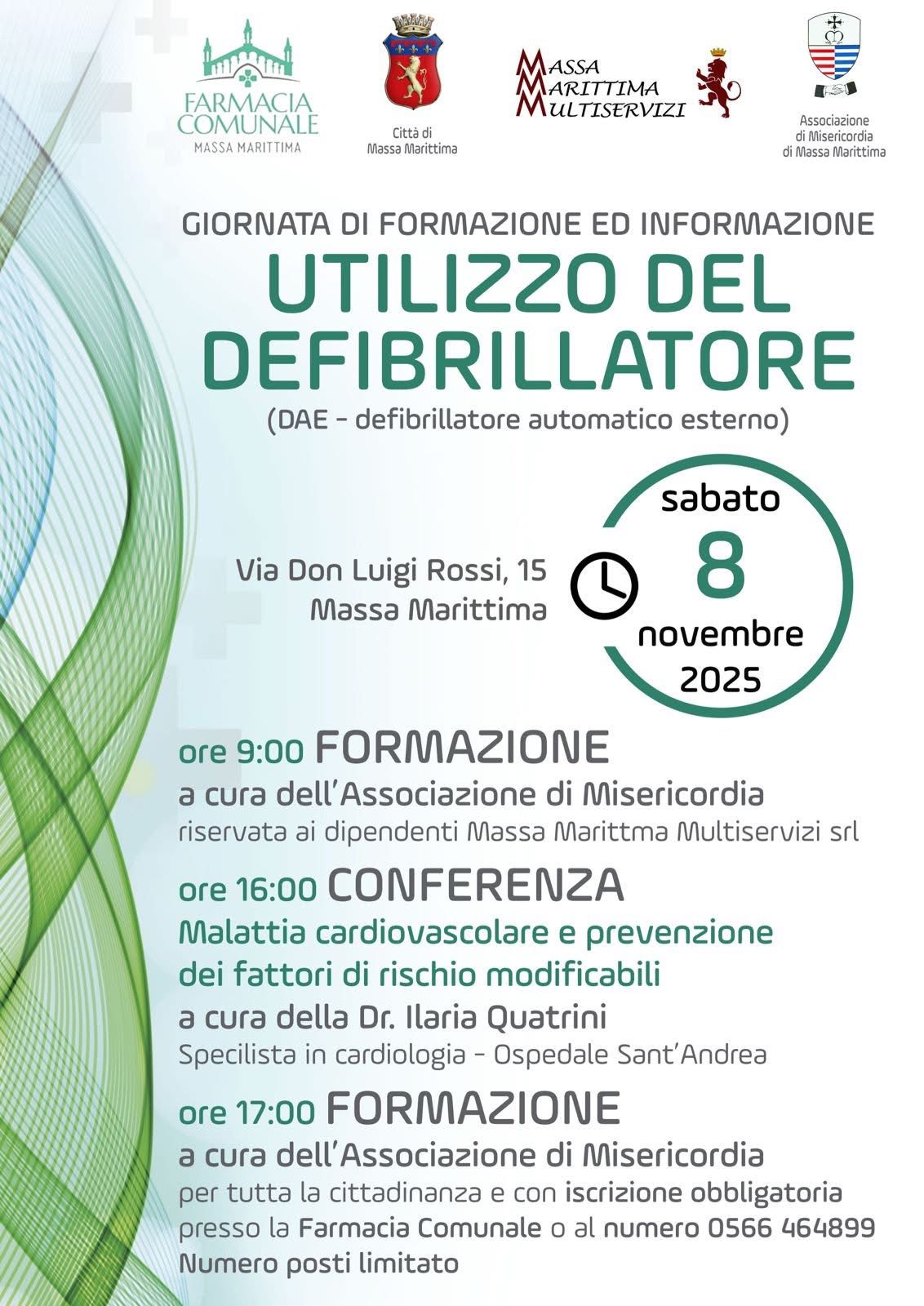 Sabato 8 novembre la Farmacia comunale di Massa Marittima organizza un nuovo incontro dedicato all’uso del defibrillatore (DAE), aperto a tutti i cittadini.