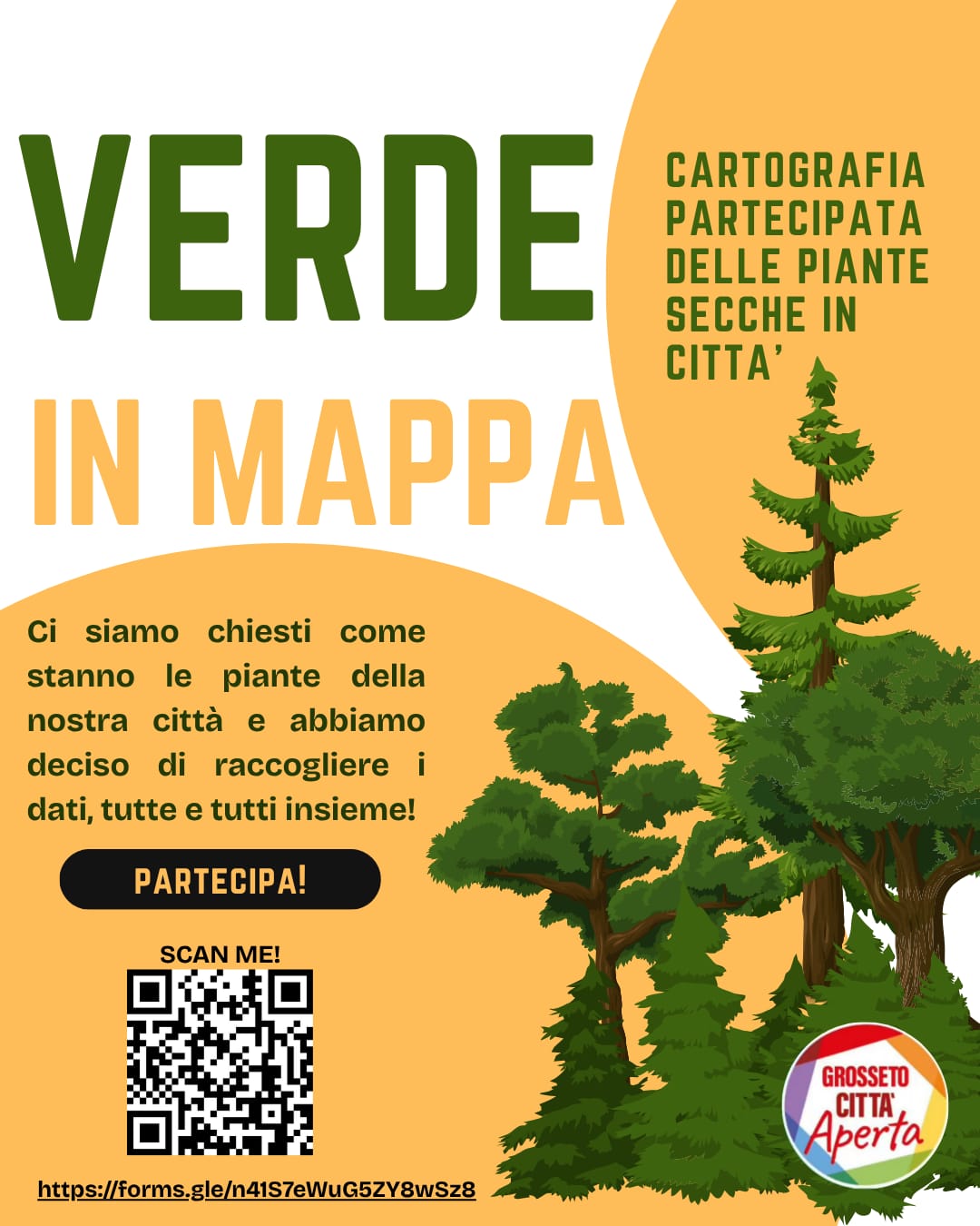 Intanto i cantieri per il piano di abbattimenti stanno per cominciare i lavori. E Grosseto Città Aperta invita l'Amministrazione comunale a rivedere il Piano, con il contributo dei cittadini: "Un contributo – spiega Ginevra Detti – che passa anche per il lancio di una campagna di monitoraggio e censimento delle alberature secche presenti in città e nelle frazioni, che abbiamo denominato ‘Verde in mappa. Cartografia partecipata delle piante secche in città’. Un progetto di citizen science, ovvero di scienza partecipata, elaborato con il supporto di esperte ed esperti naturalisti e guide ambientali, che si propone di contribuire a rigenerare il verde urbano passando da una rigenerazione del rapporto tra cittadini e città. Attraverso un form da oggi disponibile on line sui canali social di Grosseto Città Aperta ed al link https://forms.gle/56GwvPR6777MQLWx7 i cittadini potranno segnalare le piante secche che incontrano nella loro quotidianità. I risultati di questa indagine saranno portati all’attenzione dell’Amministrazione comunale – concludono – perché la cura del verde urbano non finisce con la messa a dimora delle piante, ma comincia proprio da lì".