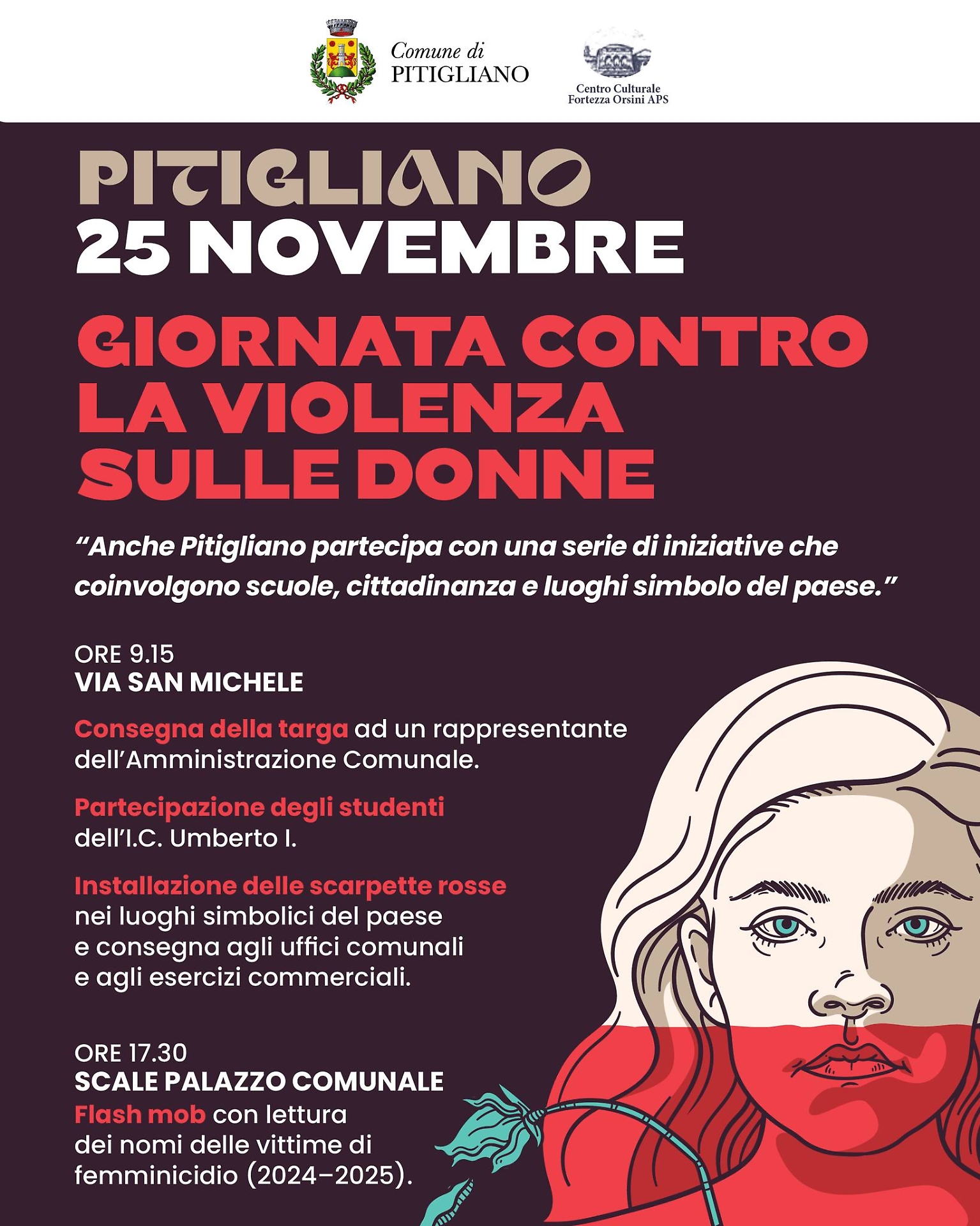 Gli studenti dell’IC Umberto I parteciperanno attivamente alla cerimonia, che proseguirà con l’installazione di scarpette rosse, realizzate in cartone dagli stessi ragazzi. Le scarpette verranno collocate in alcuni luoghi simbolici di Pitigliano, tra cui la piazza San Michele, l’Acquedotto Mediceo, il Monumento al Villano e le Ex Macerie. Inoltre, le scarpette rosse saranno distribuite anche negli uffici comunali e nelle attività commerciali del paese, con l’obiettivo di sensibilizzare tutti i cittadini sull’importanza della giornata.