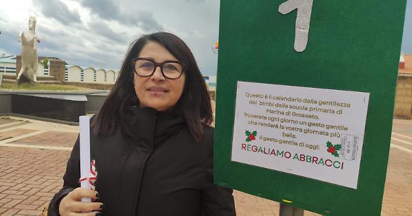 Lunedì 1° dicembre, nella piazza Monumento al 4° Stormo di Marina di Grosseto, le bambine e i bambini della scuola primaria Collodi hanno inaugurato il “Calendario dell'Avvento della Gentilezza”, un’iniziativa volta a diffondere messaggi positivi e piccoli gesti di cura all’interno della comunità. L’assessore a Istruzione e Gentilezza, Angela Amante, ha partecipato all’evento per conto del Comune, sottolineando l’importanza di momenti educativi che uniscono scuola, famiglia e cittadinanza.