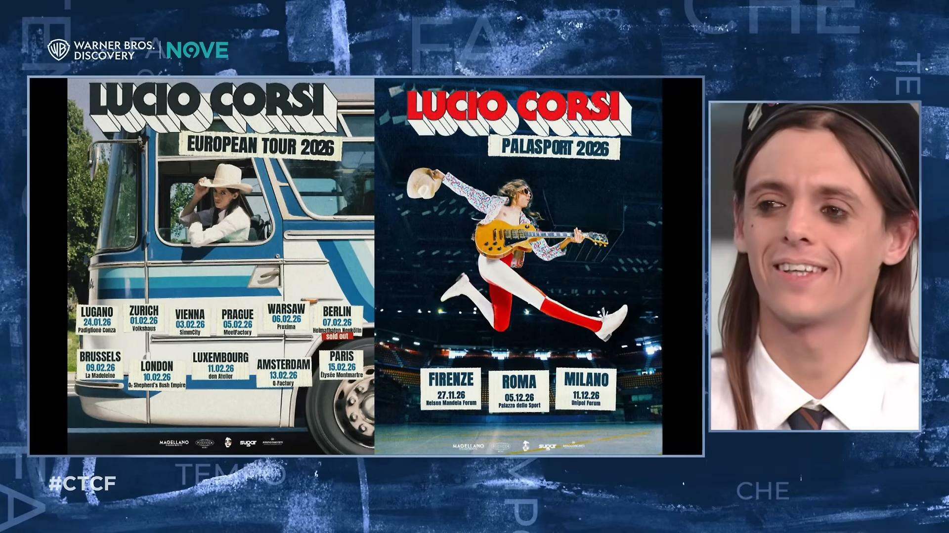 I complimenti per il premio Tenco illuminano Corsi: “Il premio Tenco è un premio prestigiosissimo. Sogno un paese con due festival, con lo stesso tipo di eco, questo mi affascina”. Fazio ricorda che Corsi ha vinto la targa Tenco come miglior album in assoluto e miglior canzone singola, un riconoscimento che in questa misura è capitato solo a Samuele Bersani, a Paolo Conte e a Fabrizio De André e poi ricorda il prossimo tour europeo. “Siamo in tour con il tour bus, perciò saliamo sul pullman, dormiamo sul pullman, ci ritroviamo il giorno dopo nella città, suoniamo e risaliamo sul pullman. Prima ci facciamo la doccia, poi saliamo sul pullman”, facendo sorridere tutto il pubblico: “Non vedo l'ora, partirei questa sera”. Zurigo, Vienna, Praga, Varsavia, Berlino, Bruxelles, Londra, Lussemburgo, Amsterdam, Parigi, ricorda Fazio. “Per la prima volta hanno usato un quadro di mia madre come copertina – ricorda ancora Corsi - ma perché è un disco live. Per i dischi in studio ho deciso che tutte le copertine saranno quadri di mia madre”, racconta con una voce che sembra richiamare il Jonny Stecchino di Benigni.