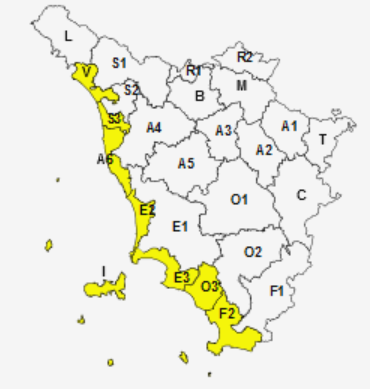 L'allerta mareggiate sulla costa toscana (fonte: "Allerta meteo Regione Toscana")