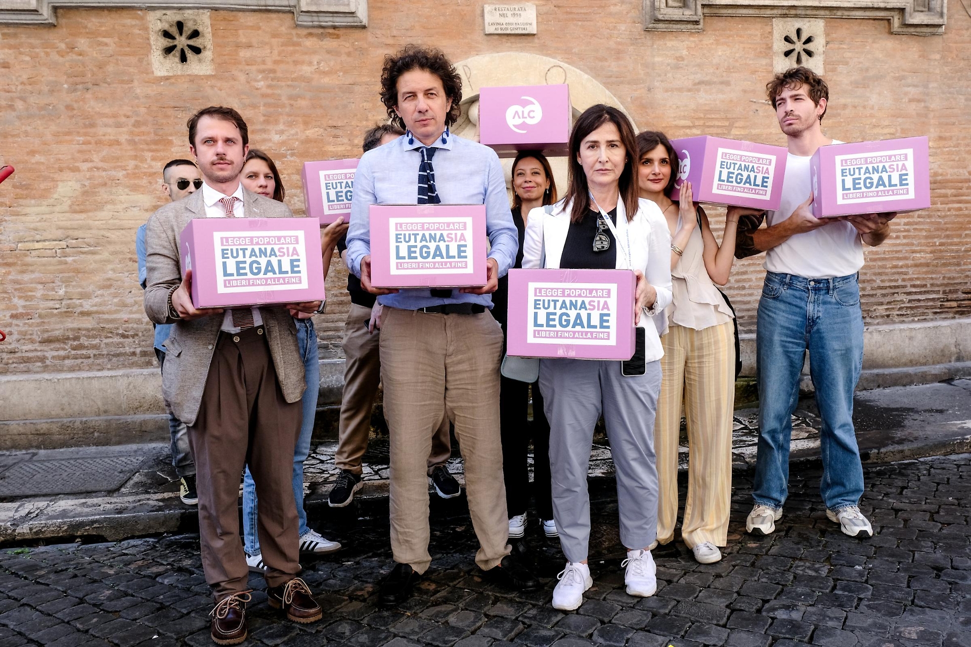 L'Associazione Coscioni mentre consegna la proposta di legge per legalizzare tutte le scelte di fine vita