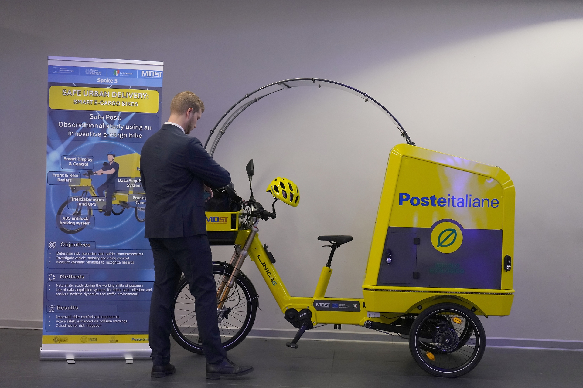 Queste «veicoli leggeri e completamente green», come riporta in un comunicato Poste, sono frutto di una collaborazione con il Centro nazionale per la mobilità sostenibile MoST e partner come Italian Aluminium Technology, Pirelli e università di Firenze, Bergamo e Politecnico di Milano.