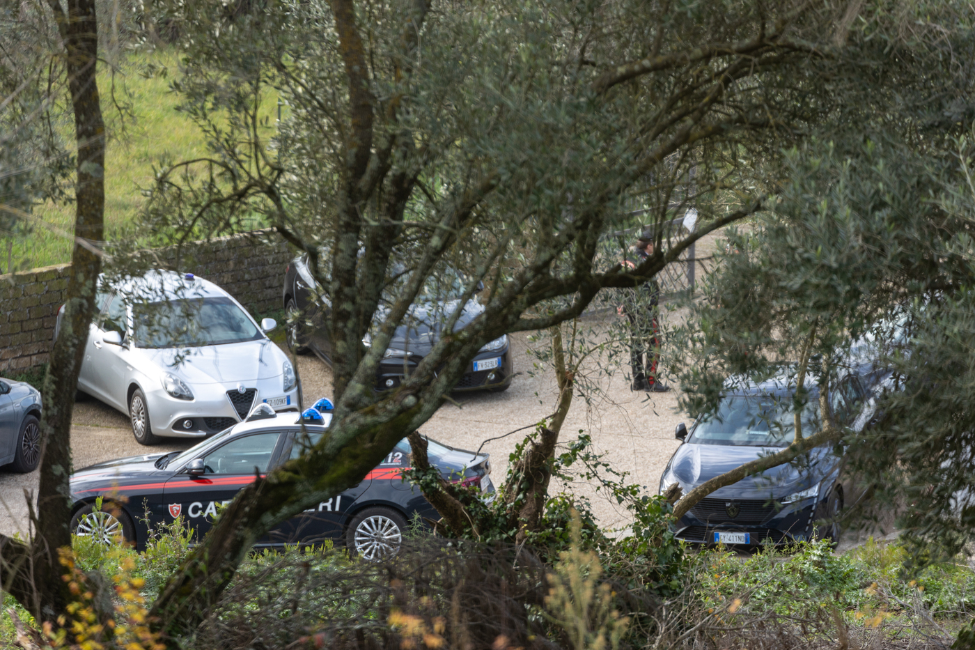 Le auto degli inquirenti questa mattina