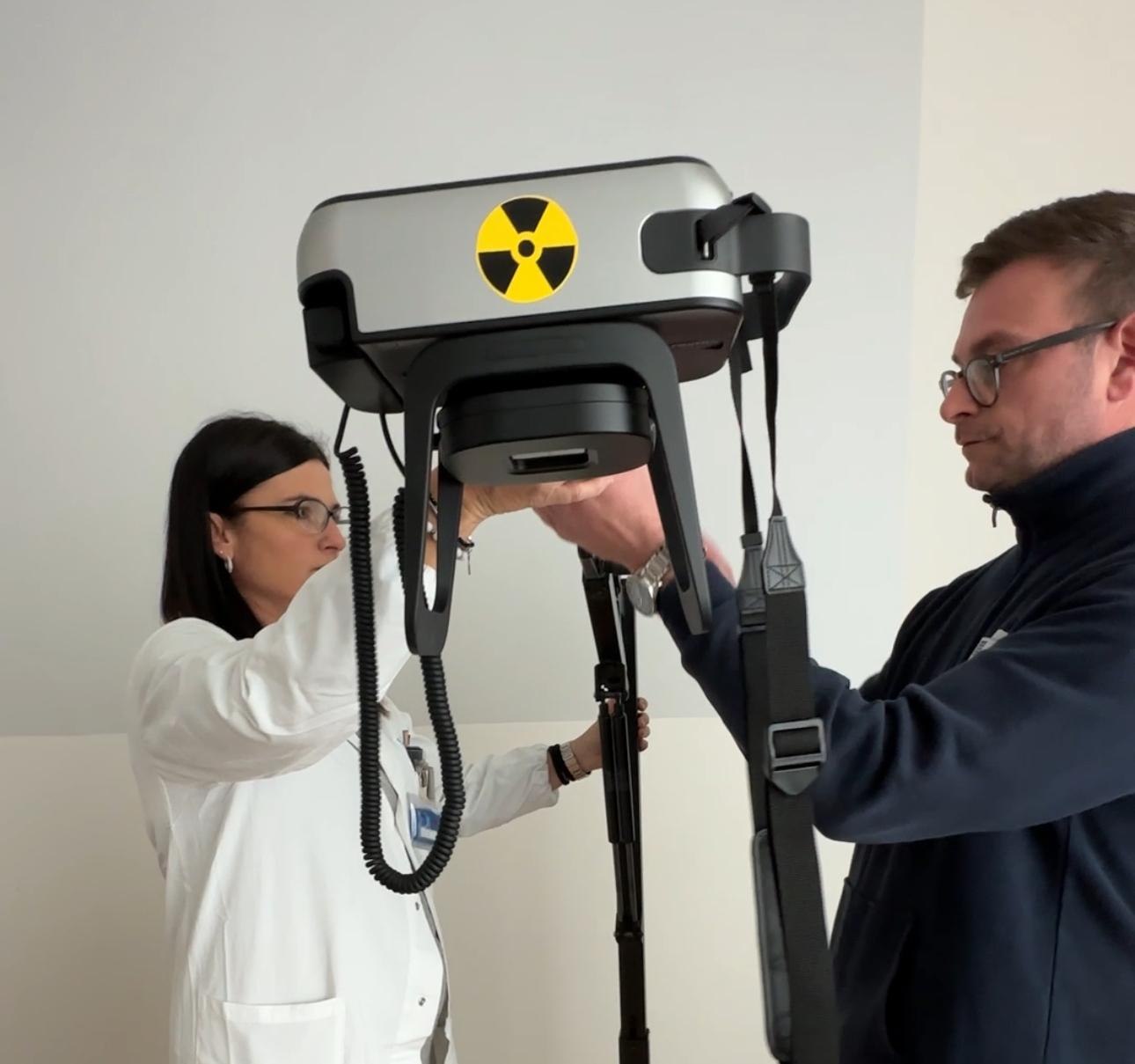 Si tratta di un radiografo a raggi X trasportabile, leggero e di facile montaggio, dotato di batteria integrata e quindi utilizzabile anche in assenza di collegamento elettrico, in situazioni di emergenza o in contesti complessi. L’apparecchiatura è pensata per l’assistenza domiciliare, ma anche per l’impiego nelle Rsa e in tutti i casi in cui la trasportabilità del paziente rappresenta un problema clinico e umano.
