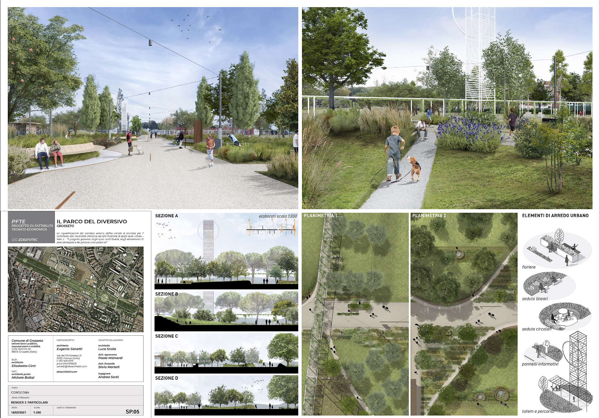 Uno dei fogli con i render progettuali