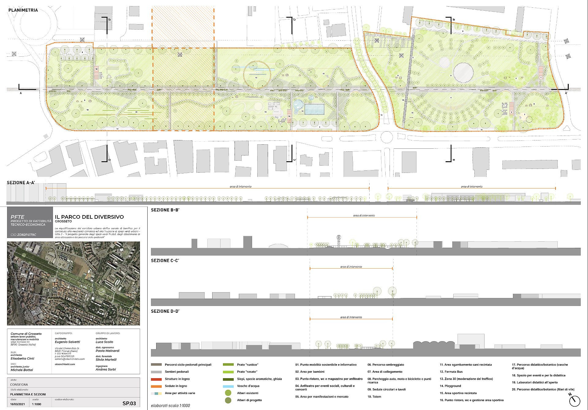 Le aree didattico-culturali: Attualmente poco evidenti, i percorsi progettati come "laboratori verdi" all'aperto diventeranno probabilmente zone anche dove fare educazione ambientale. I render mostrano queste aree ricche di dettagli paesaggistici. Una risorsa probabilmente destinata a diventare un asset educativo importante per le scuole di Grosseto.