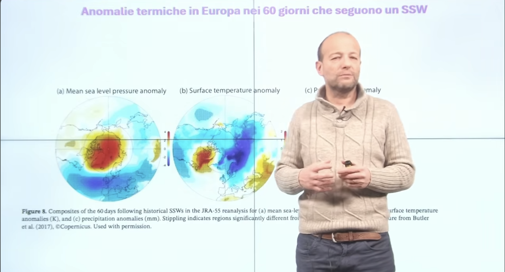 La ricerca meteorologica recente ha identificato diversi "regimi circolatori" che seguono uno stratwarming, con conseguenze completamente diverse sull'Italia. Quando si forma un Greenland Blocking (alta pressione sulla Groenlandia), mediamente genera anomalie termiche positive o leggermente negative sull'Italia. Quando invece un European Blocking sfuma in un Atlantic Ridge, allora si sviluppano le situazioni più fredde, con anomalie negative marcate soprattutto al centro-nord peninsulare.