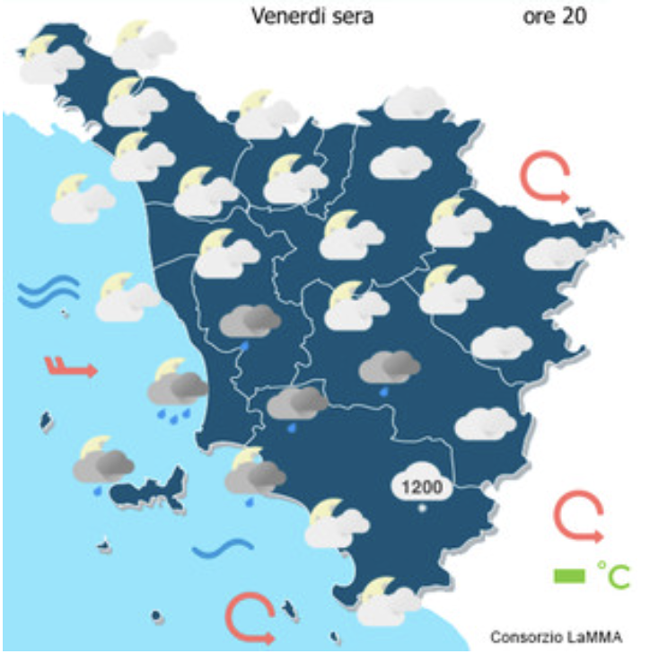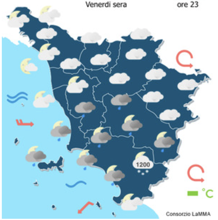 La situazione meteo per la sera del 30 gennaio (fonte: Consorzio Lamma)