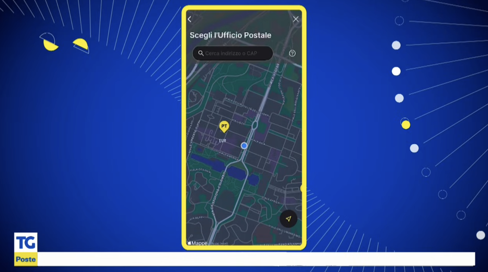 La schermata dove poter selezionare l'ufficio dalla mappa (immagine dal video illustrativo Poste Italiane)
