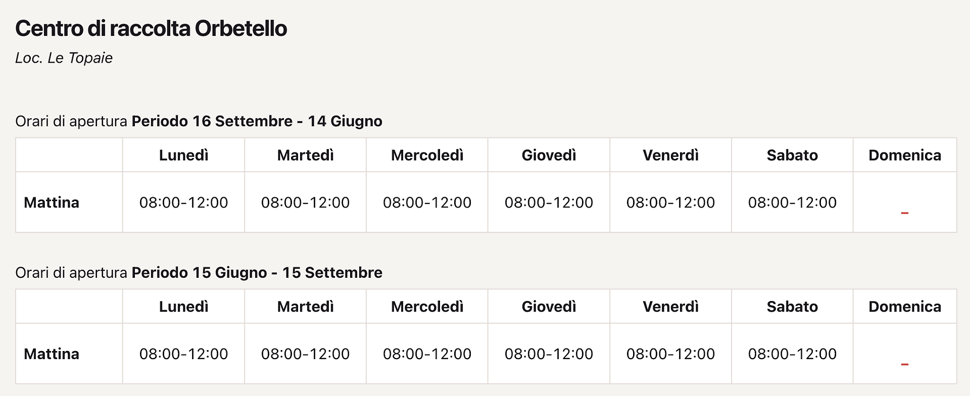 Gli orari del centro di raccolta sul sito 6 Toscana