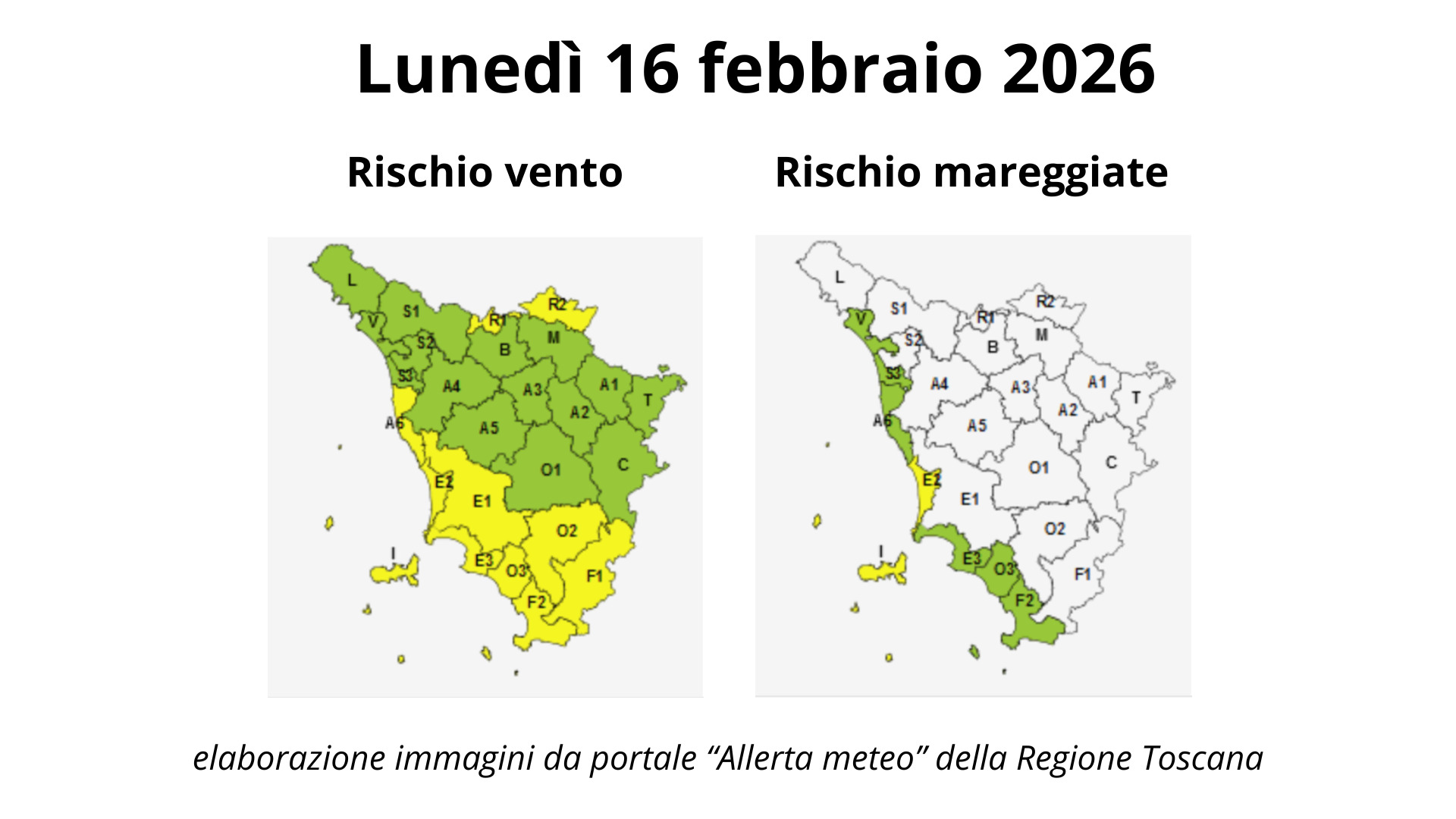 Lunedì 16 febbraio scatta in Toscana un’allerta meteo con codice giallo per vento forte e mareggiate: nella provincia di Grosseto l’attenzione è soprattutto sulla fascia costiera e sulle aree del sud-ovest, con un peggioramento più marcato dal pomeriggio e mare molto mosso lungo il litorale. Il quadro, nelle previsioni meteo Lamma, combina raffiche in rinforzo (prima di Libeccio, poi Maestrale) e moto ondoso in aumento, con possibili disagi per la navigazione e per le attività sul mare.