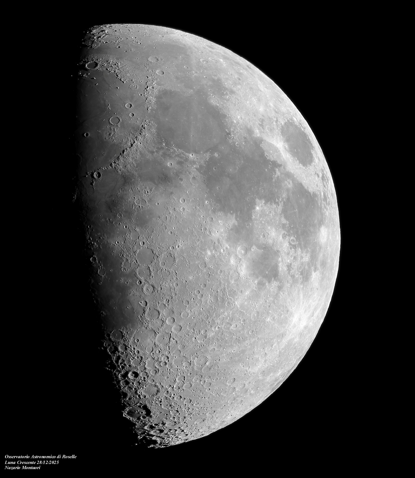 Luna crescente, immagine di Nazario Montuori dall'Osservatorio astronomico di Roselle (2025)