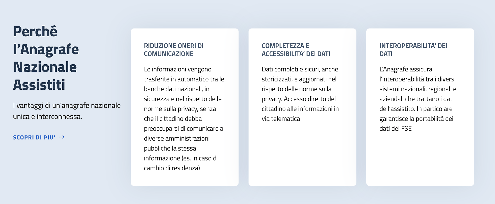 I perché dell'Anagrafe nazionale assistiti descritti brevemente sul sito