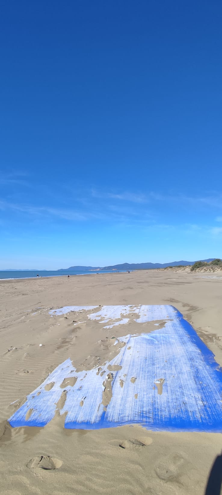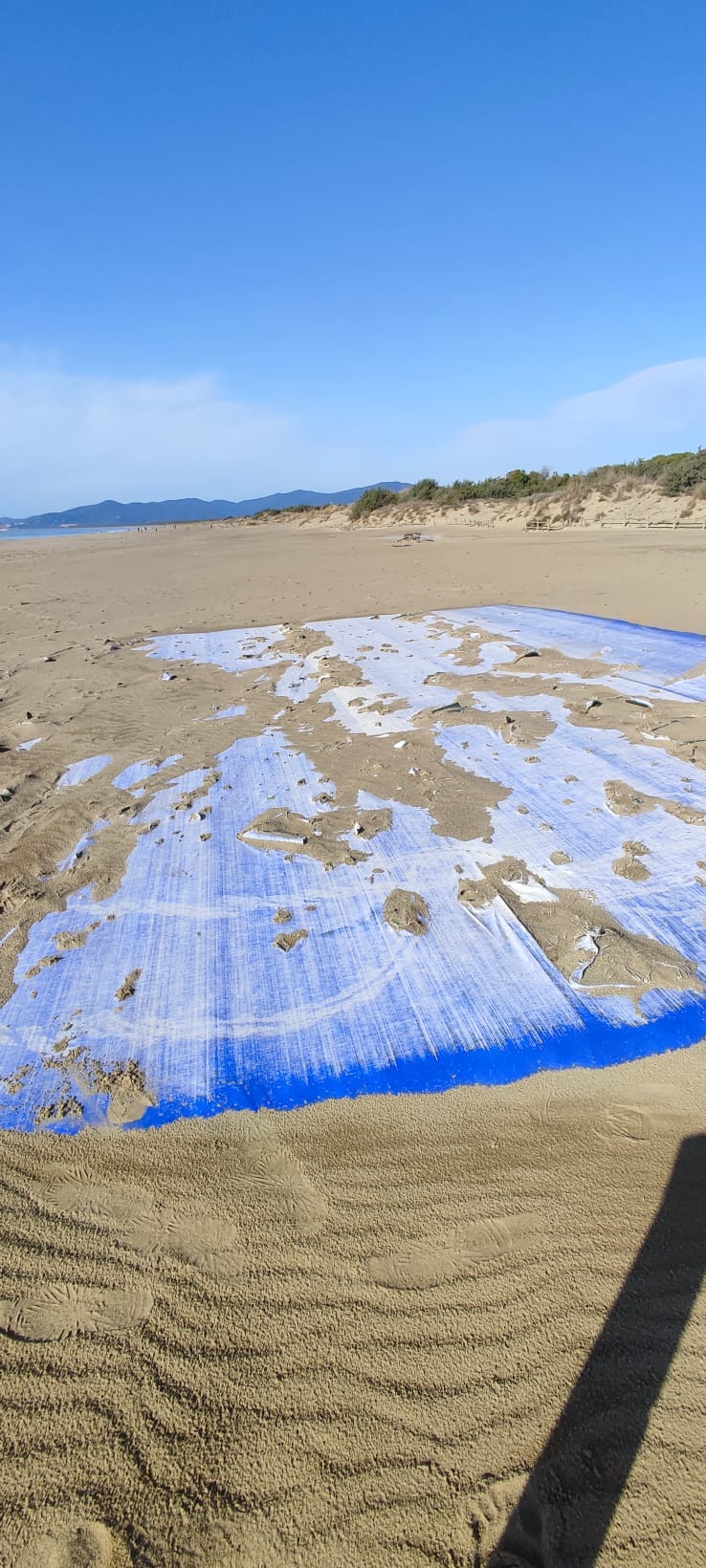E aggiunge: «Siamo tutt'altro che vicini ai valori della sostenibilità. Spero che qualcuno dopo la segnalazione se ne occupi: credo sia giusto per tutti che sia rimosso visto anche lo stato di deterioramento, non so quanto di questo telo poi sia sotto alla sabbia».