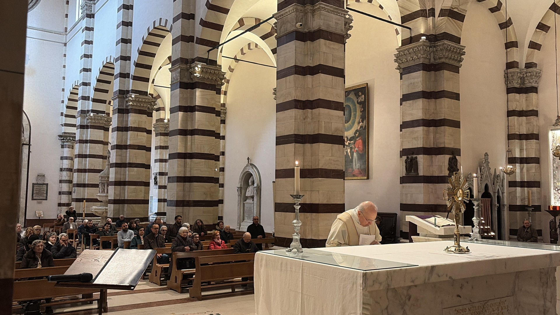 In un clima di raccoglimento e intensa partecipazione, Grosseto e le comunità delle diocesi di Pitigliano-Sovana-Orbetello hanno risposto oggi all’appello della Conferenza Episcopale Italiana dedicando l’intera giornata a digiuno e preghiera per la pace. La Cattedrale di San Lorenzo, cuore spirituale della città, ha ospitato la celebrazione eucaristica presieduta dal vescovo Bernardino, affiancato dal vescovo emerito Rodolfo Cetoloni e dai sacerdoti don Roberto Nelli e don Alfio Bambagioni. La partecipazione dei fedeli è stata sentita e silenziosa, con momenti di meditazione e adorazione eucaristica che hanno scandito la mattinata, guidati dalle riflessioni dell’Ufficio Liturgico nazionale della CEI.