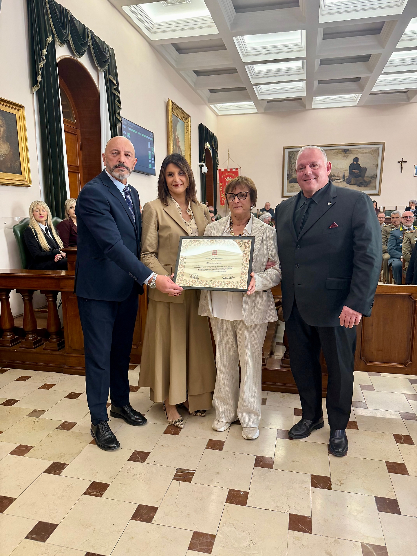 Alla presenza della moglie, della figlia e dei familiari, la cerimonia è stata scandita dalla proiezione di un video commemorativo che ha ripercorso i momenti salienti della sua carriera. Il conferimento della benemerenza è stato accompagnato da parole di profonda stima da parte dei vertici dell'amministrazione.