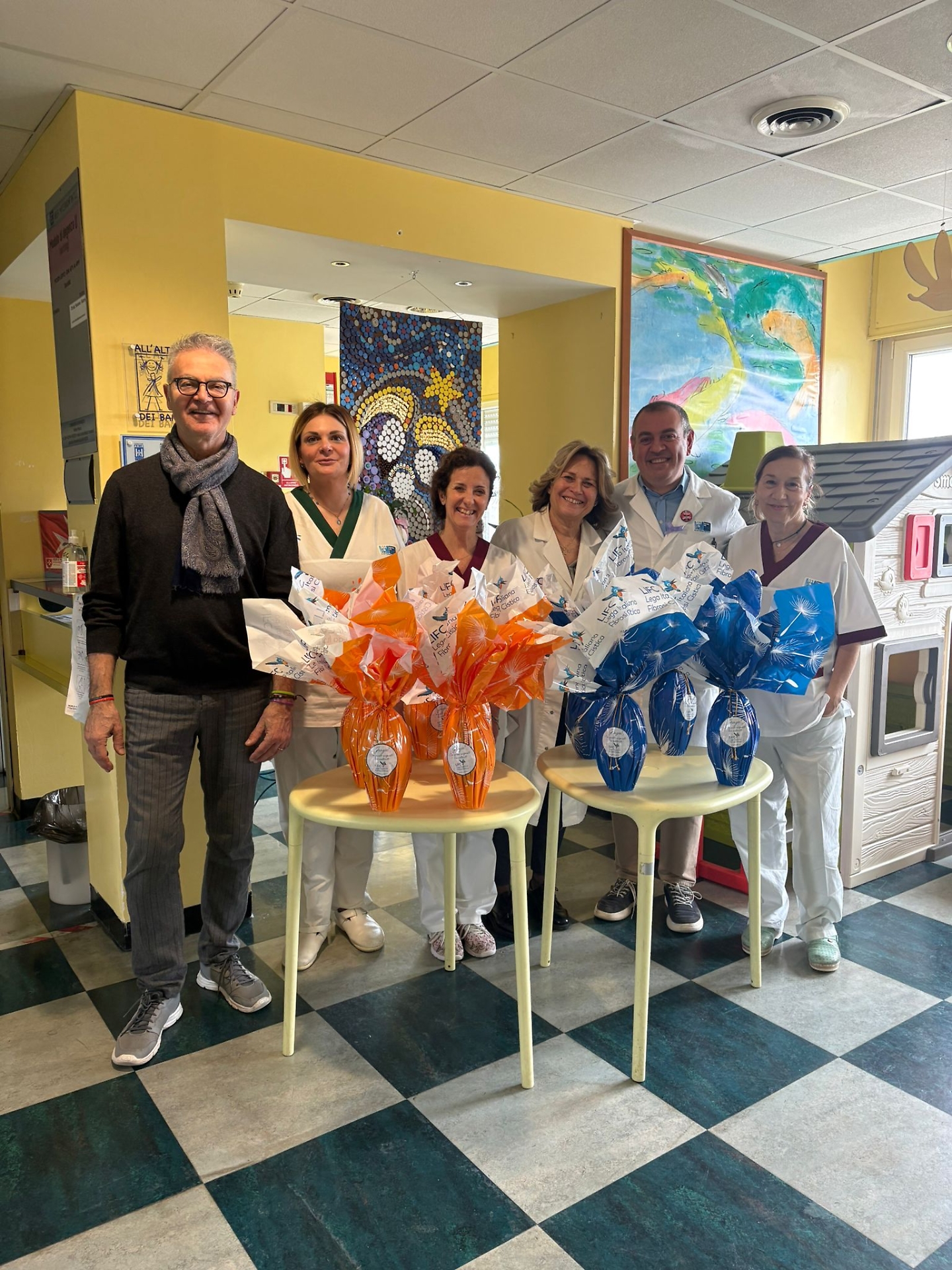 La prima iniziativa ha visto protagonista l’associazione Fibrosi cistica, rappresentata dal presidente Pasqualino Casaburi, che ha donato uova di cioccolato al reparto. Ad accogliere la delegazione la direttrice della Pediatria Susanna Falorni insieme allo staff sanitario e al direttore medico di presidio Michele Dentamaro. Il reparto dispone di un percorso dedicato ai pazienti affetti da fibrosi cistica ed è inserito in una rete regionale di riferimento per la gestione della patologia.