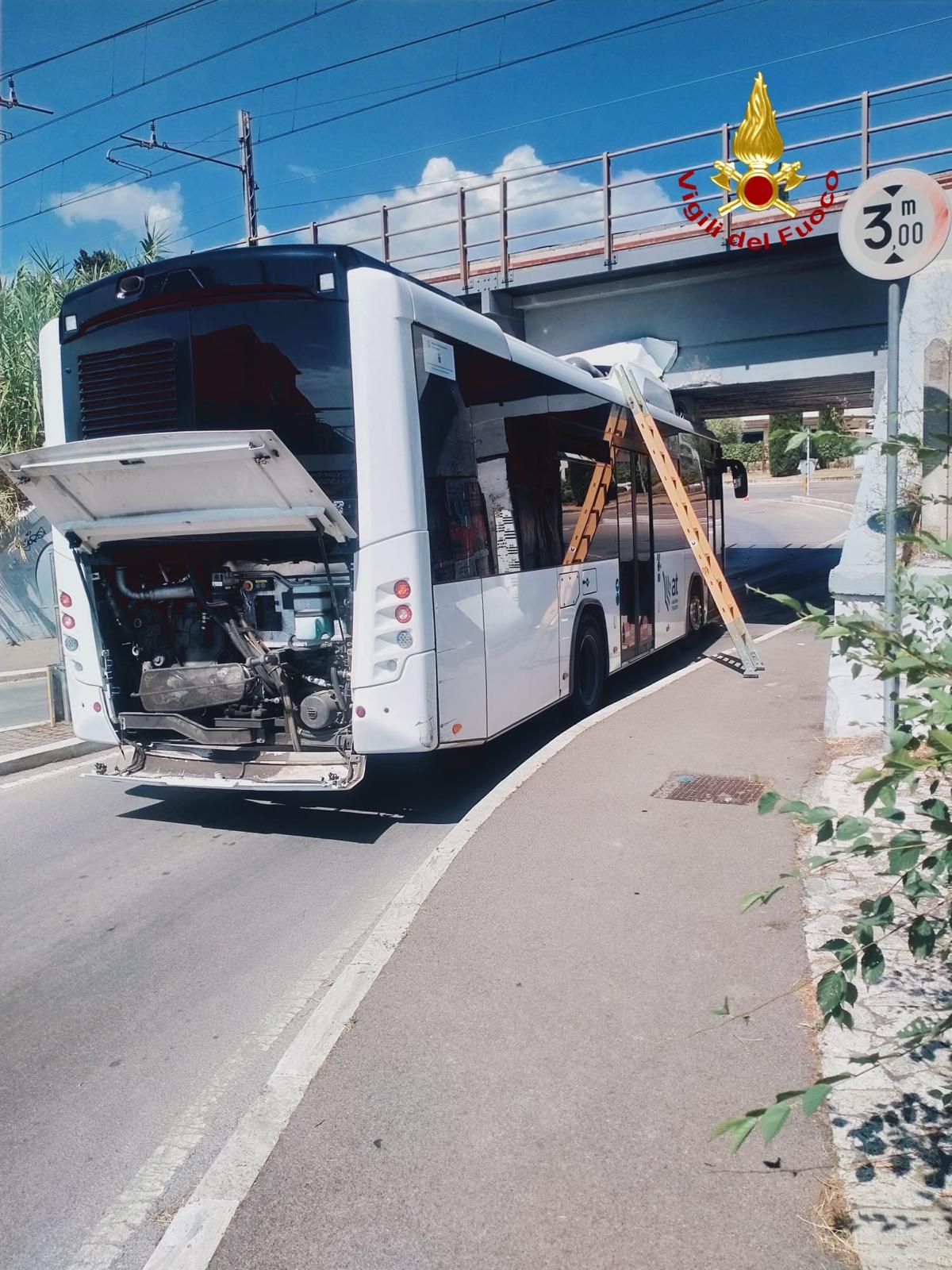 Sul posto sono intervenuti i Vigili del fuoco. Gli uomini del 115 hanno dovuto operare in una situazione di particolare pericolosità perché il mezzo pesante è alimentato a metano e i serbatoi sono sulla parte anteriore del tetto, quella entrata in contatto con la struttura del sottopasso.