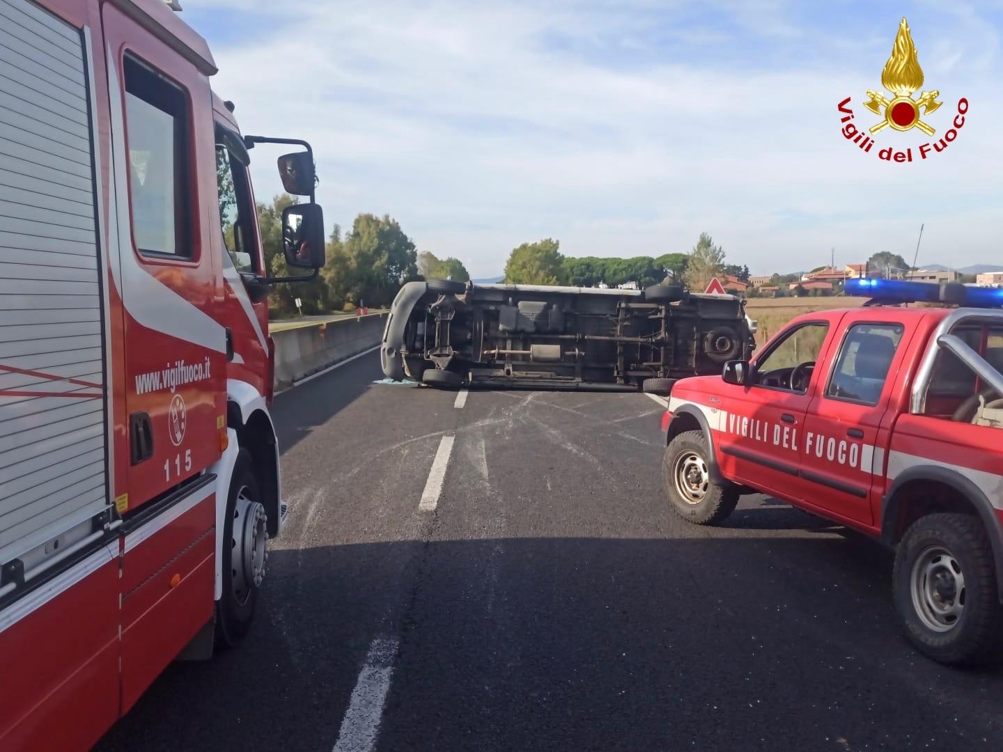 Paura nella mattinata di oggi lungo la strada statale Aurelia, nel tratto compreso nel Comune di Orbetello, nei pressi dell’uscita per Patanella, dove un furgone Mercedes Sprinter con rimorchio si è ribaltato, provocando disagi alla viabilità e il ferimento di due persone.