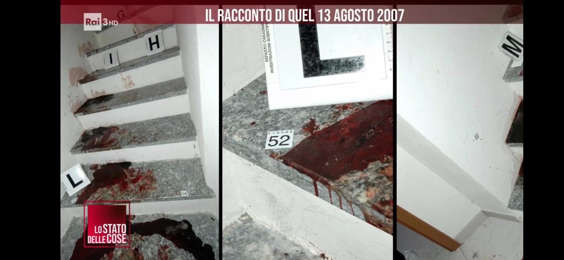 “La cosa che colpiva era la ferocia?”, chiede Petracalvina. “La ferocia, la cattiveria – risponde Marchetto – guardando quella macchia di sangue ai piedi delle scale si vede già che è stata inferta con una cattiveria inaudita sul corpo di questa povera ragazza. Andando avanti dove c’è il telefono si vedevano proprio quegli schizzi che sembravano una conseguenza dei colpi inferti ancora al corpo”.