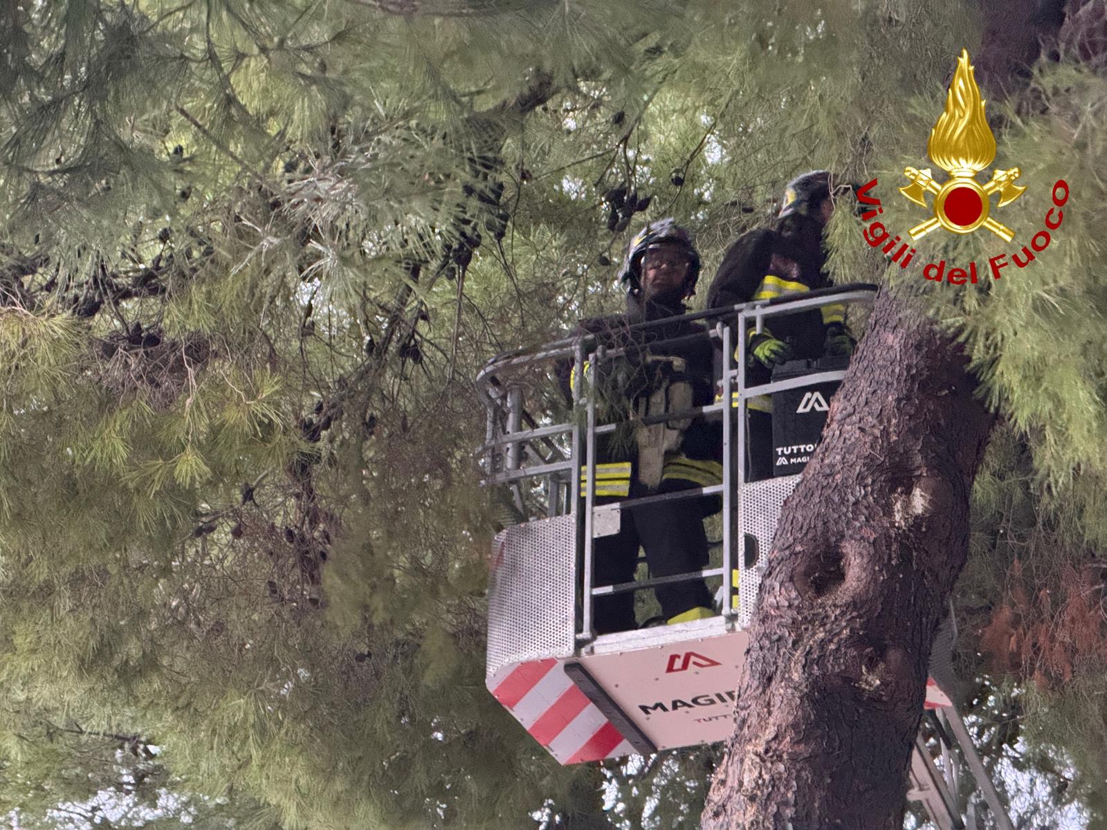 I Vigili del fuoco, sotto una pioggia battente, dopo le necessarie verifiche di sicurezza e in accordo con le autorità competenti, hanno iniziato le operazioni di abbattimento controllato della grossa pianta, eliminando così la situazione di potenziale pericolo.