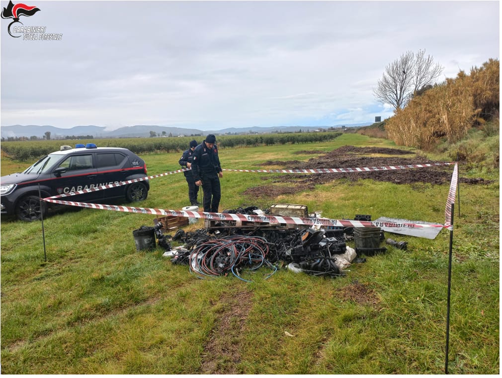 I carabinieri forestali del Nipaaf (i Nuclei investigativi di polizia ambientale agroalimentare e forestale) di Grosseto sono intervenuti in località La Rugginosa, a Grosseto, dove un terreno agricolo era stato trasformato in deposito di rifiuti da un'impresa edile. L’impresa aveva recintato l’area destinandola a servizio della propria attività, accumulando così nel tempo ingenti quantitativi di rifiuti anche pericolosi come batterie al piombo per automezzi, involucri contenenti lana di roccia e Raee derivanti dallo sgombero di locali domestici, oltre a numerosi "big bag" contenti rifiuti misti. Lo stoccaggio dei rifiuti, senza alcuna autorizzazione, era anche privo delle normali cautele previste per la gestione degli scarti.
