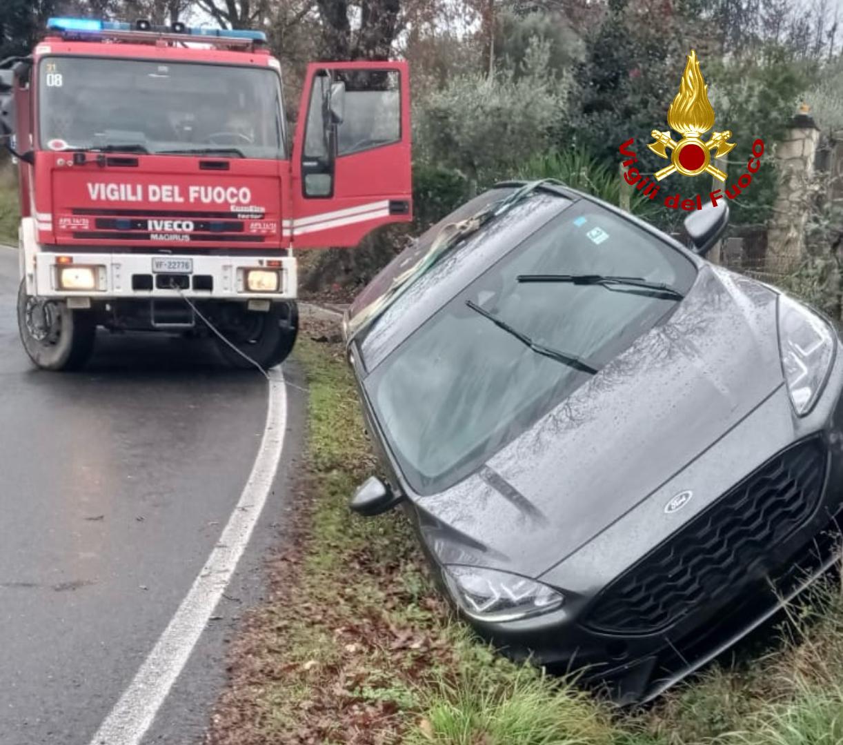 Ha perso il controllo dell'auto ed è uscita di strada, finendo nel fossato a lato dalla carreggiata. A bordo della vettura c'era una donna, che viaggiava da sola. L'incidente – nel quale non sono rimasti coinvolti altri veicoli – è accaduto nel pomeriggio di oggi – giovedì 25 dicembre – sulla Strada provinciale 74 in direzione Pitigliano.