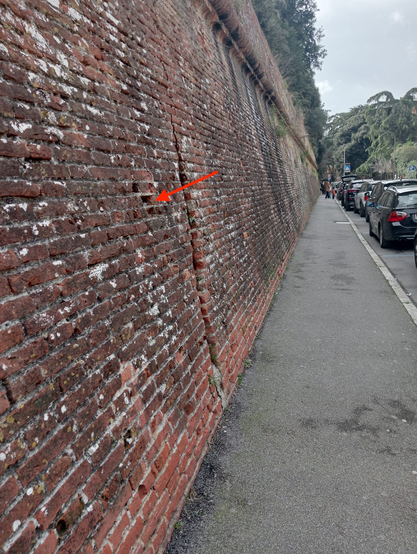 Le siringhe sono state notate all’interno di un piccolo incavo del paramento, dove un mattone danneggiato ha creato una sorta di nicchia. Un luogo riparato, ma comunque a portata di mano di chi ogni giorno percorre quel tratto: studenti, famiglie, insegnanti, residenti che usano il marciapiede per raggiungere le scuole, il centro, o parcheggiare l’auto lungo le mura.