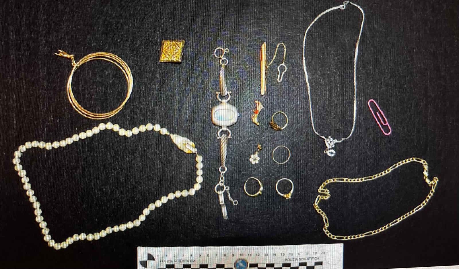 Alla verifica, nella tasca della giacca della tuta l’uomo aveva una busta bianca rigonfia. All’interno c’erano una collana di perle, diversi monili in oro tra cui un bracciale ad anelli e 1430 euro in contanti.
