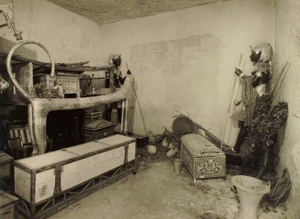Il 24 novembre 1922 Carter aveva individuato e liberato l’ingresso della scala che portava sotto la tomba di Ramses VI. Due giorni dopo, il 26 novembre, accompagnato da Carnarvon, Lady Evelyn e l’assistente Arthur Callender, Carter praticò una piccola apertura nella porta sigillata, permettendo così di scrutare nell’oscurità della camera funeraria. Questa rivelazione iniziale mostrò un interno colmo di oggetti intatti e sigillati da oltre 3.000 anni. La tomba fu immediatamente riconosciuta come appartenente a Tutankhamon, a causa dei sigilli e degli oggetti riportanti il suo nome e il suo cartiglio.