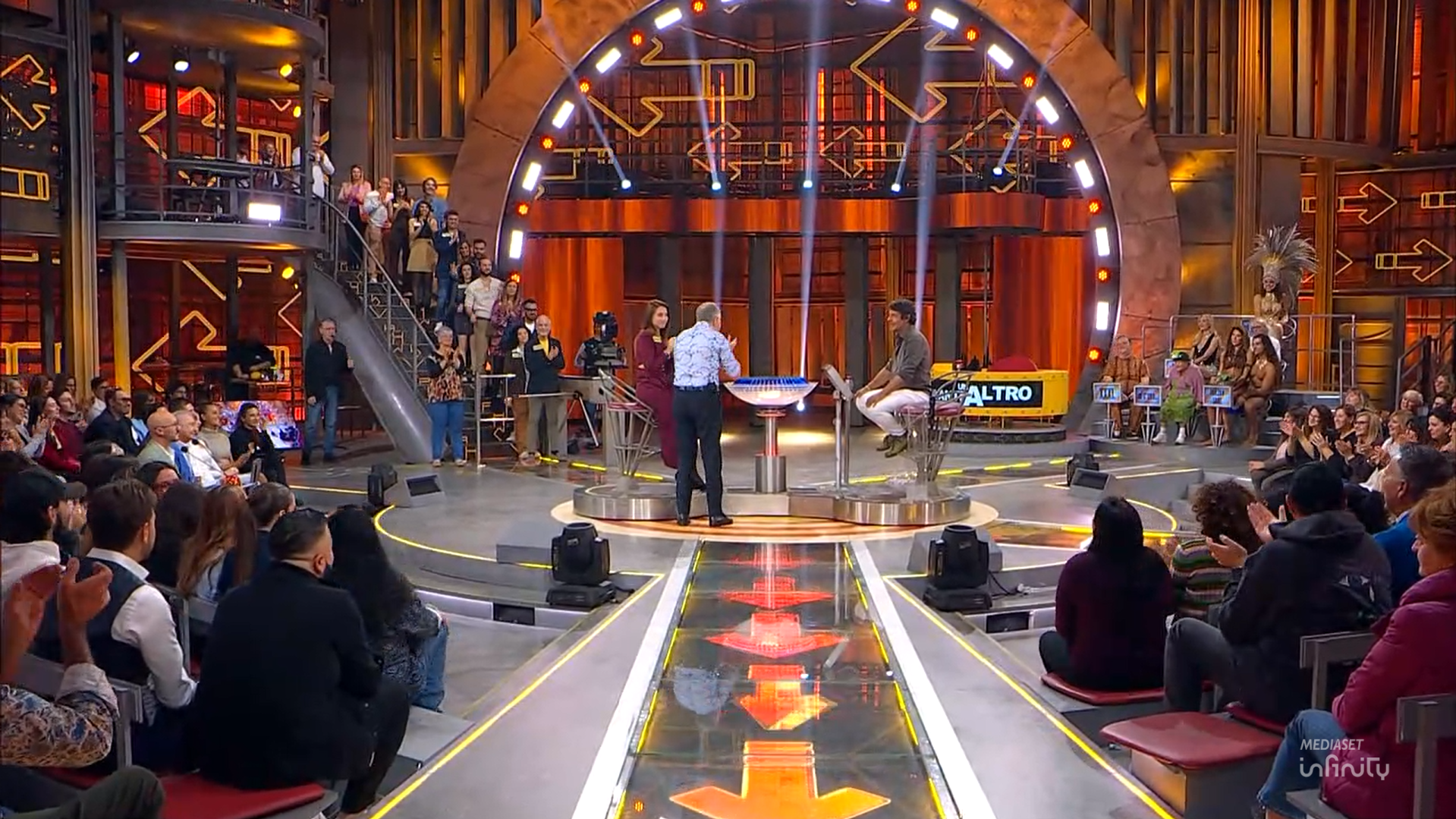 Bonolis chiede scherzosamente allo studio di uscire, poi a Mariangela: “ Che facevamo con l'intelligenza artificiale?”.