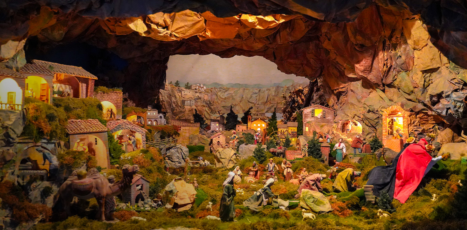 Anche l’origine della parola “presepe” riflette questa semplicità: deriva dal latino praesaepe, che indicava una mangiatoia o un recinto per animali. Nella tradizione francescana, il presepe di Greccio non prevedeva figure scolpite, ma solo elementi reali — paglia, mangiatoia e animali — a testimonianza del desiderio di Francesco di ricreare l’ambiente della nascita nel modo più autentico possibile. Nel corso dei secoli, dai materiali più poveri come il legno e la terracotta si è passati a forme d’arte sempre più elaborate, con statuine scolpite, dipinte e persino meccanizzate.