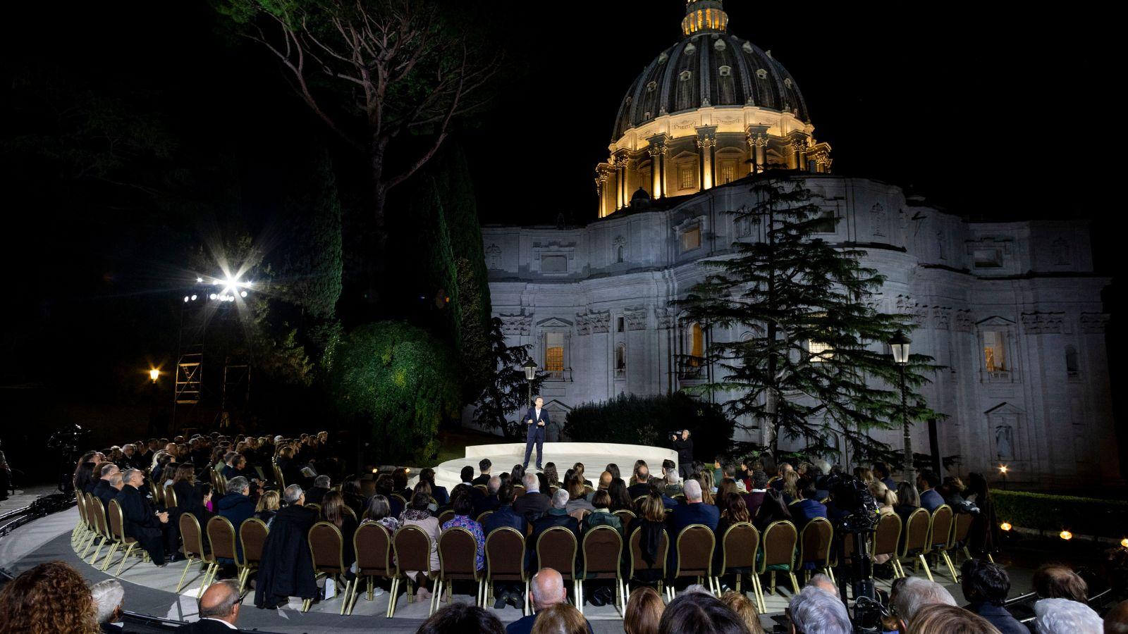 Per la prima volta un grande spettacolo televisivo prende vita direttamente dal cuore di Città del Vaticano, un luogo in cui il tempo sembra sospendersi e la storia si intreccia con la spiritualità. Roberto Benigni porta in scena un racconto che diventa teatro, poesia, meditazione e celebrazione. La sua narrazione non è solo un omaggio alla figura del primo Apostolo, ma un viaggio nella vita dell’uomo cui Gesù Cristo consegnò la responsabilità più grande: guidare la sua Chiesa. Con il suo stile inimitabile, Benigni restituisce un Pietro vivo, intenso, fragile e grandioso al tempo stesso. La sua voce attraversa dubbi, emozioni, cadute e rinascite, trasformando la figura dell’Apostolo in un protagonista vicino e sorprendentemente moderno.