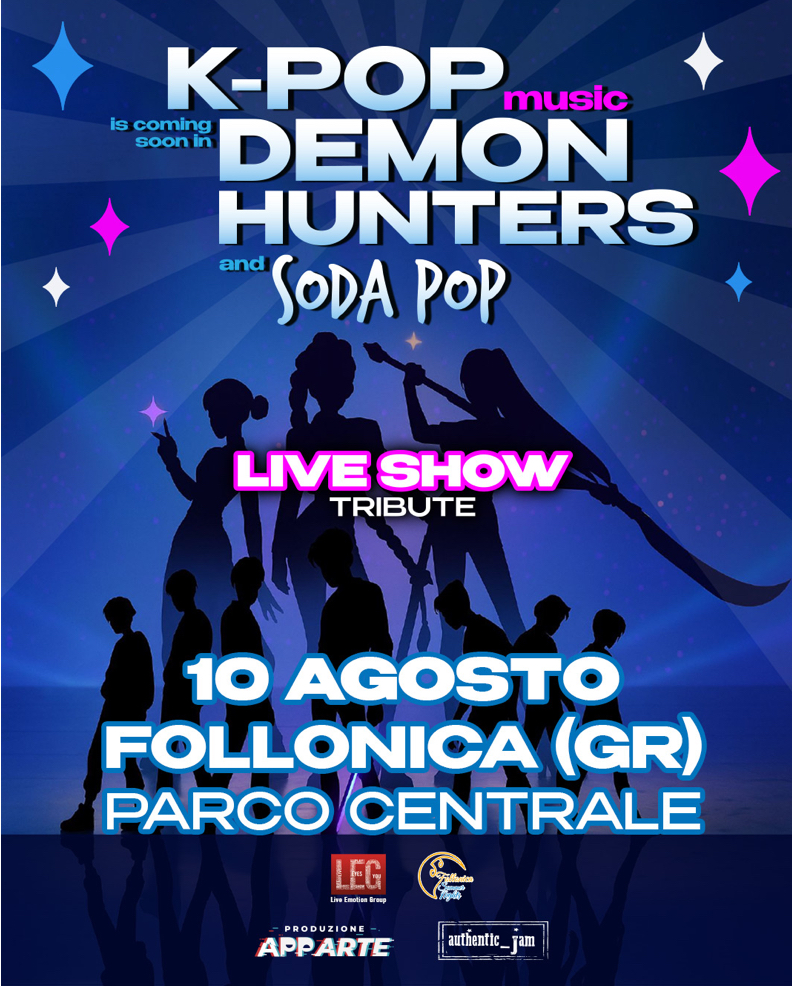 Sta prendendo forma il cartellone del Follonica Summer Nights 2026. Dopo gli annunci dei concerti dei Negramaro (12 agosto) e di Emma (4 agosto), ecco un appuntamento dedicato in particolare ai teenager. Lunedì 10 agosto andrà in scena “K-Pop music is coming soon in Demon Hunters and Soda Pop”, il live show tribute che reinterpreta in chiave spettacolare l’universo delle serie coreane da cui trae ispirazione. Un evento a cura di Leg-Live emotion group. I biglietti saranno in vendita da mercoledì 24 dicembre alle ore 10 su TicketOne.