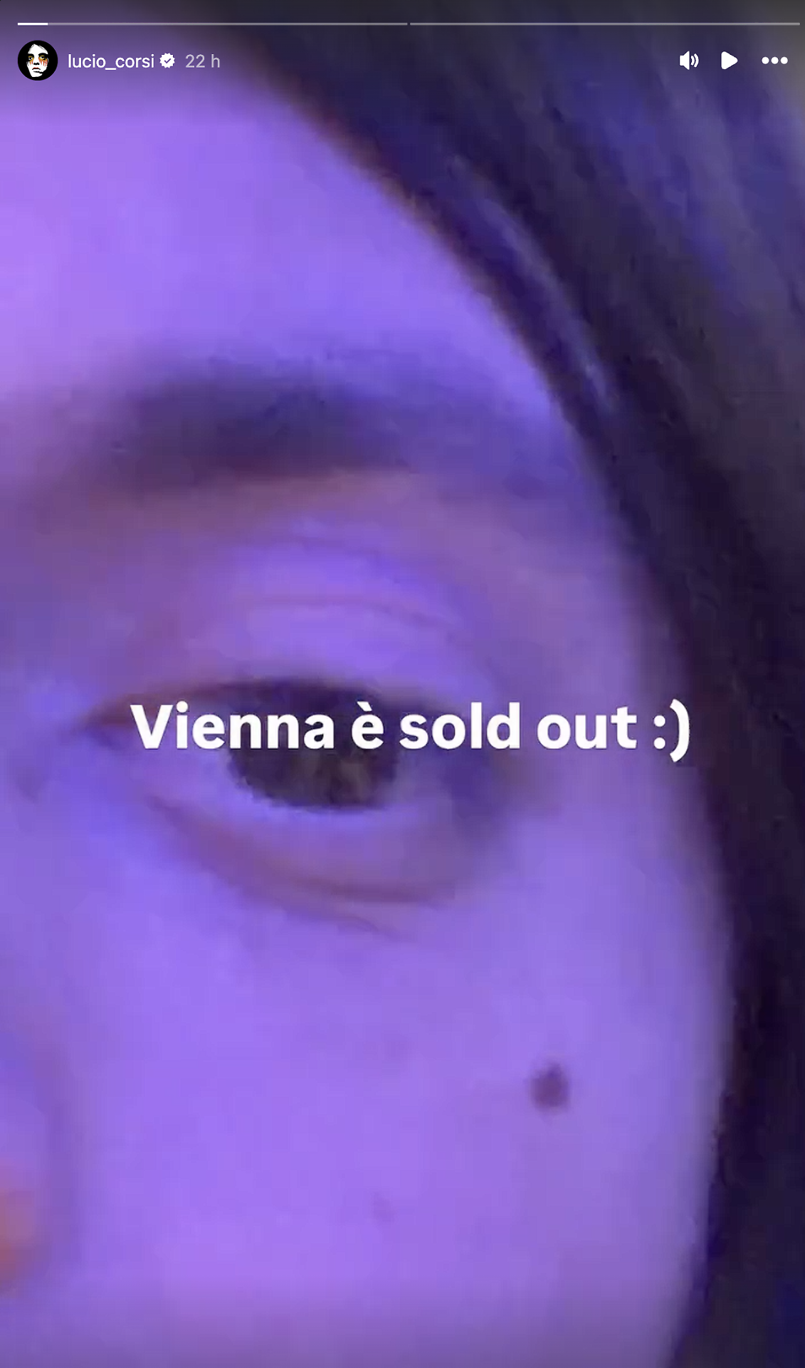 La storia Instagram di Corsi dove annuncia il sold out di Vienna