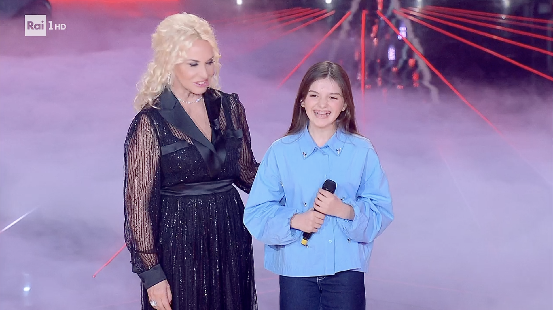Arrivato il momento dell'esibizione, Antonella Clerici ha poi accompagnato Serena sul palco ricordando anche l’altra sua grande passione, il nuoto sincronizzato: «Serena ama la musica, addirittura la porta sott’acqua anche quando fa il suo sport preferito, oggi è venuto anche papà», ha detto salutando i genitori tra il pubblico.