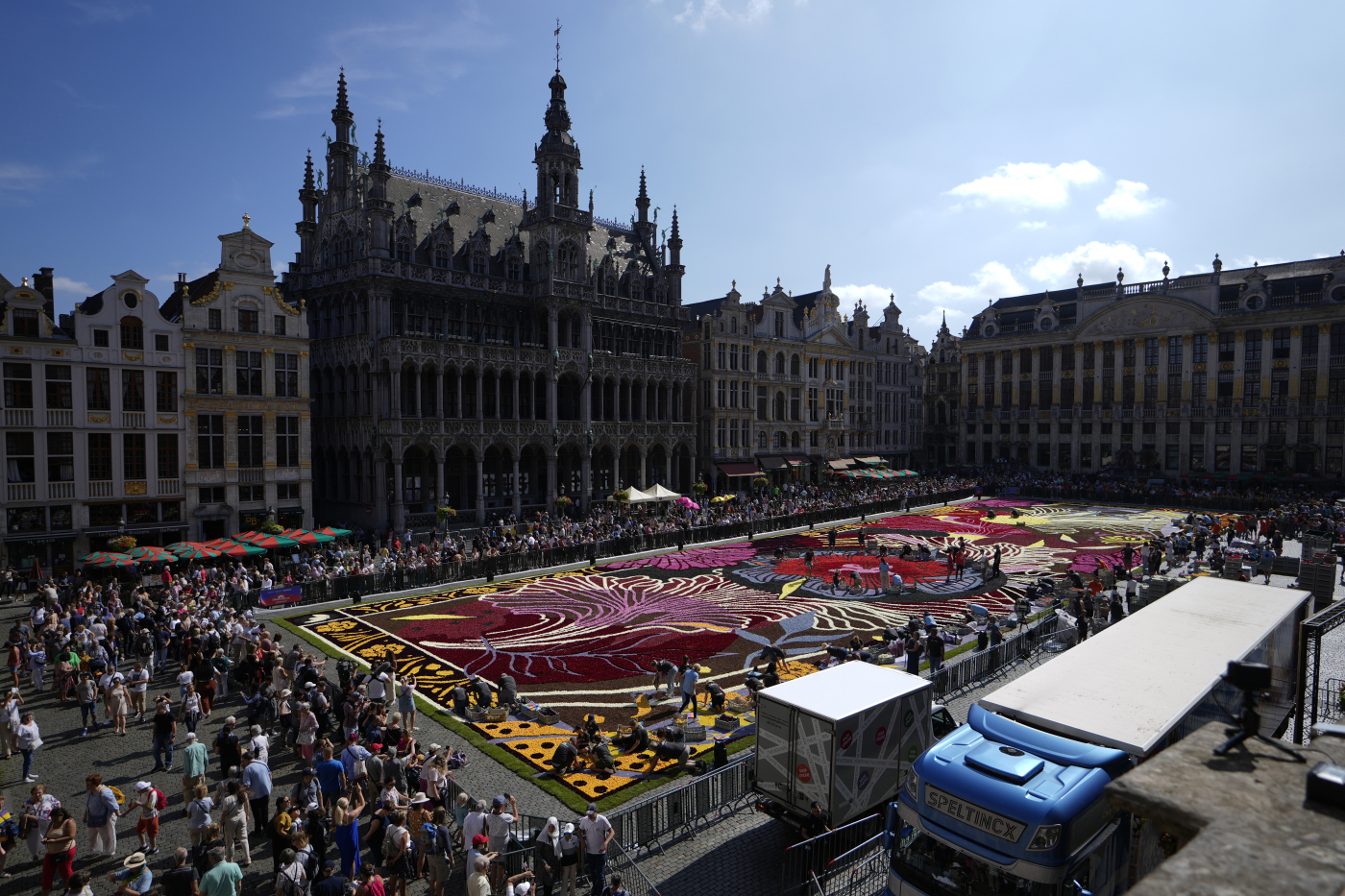 Gigantesco tappeto di fiori allessito nella Grand Place a Bruxelles (Foto LaPresse 2024)