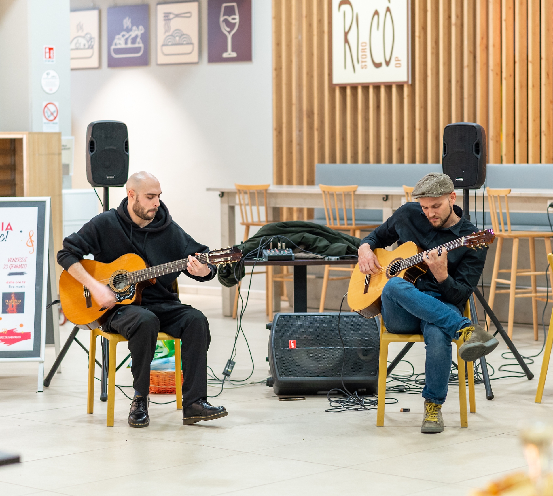 L’esibizione del duo viene presentata come una proposta acustica essenziale e “raffinata”, costruita sul dialogo tra due chitarre e pensata per creare un’atmosfera intima e coinvolgente.