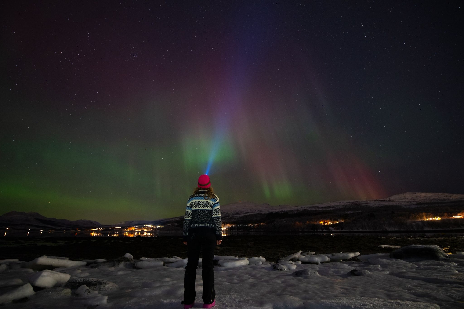 Martina davanti all'aurora boreale (foto di Martina Massai)