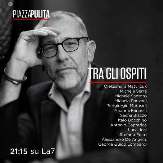 Tra gli ospiti annunciati: Oleksandra Matvijcuk, Michele Serra, Michele Santoro, Michela Ponzani, Piergiorgio Morosini, Arianna Farinelli, Sacha Biazzo, Italo Bocchino, Antonio Caprarica, Luca Josi, Stefano Feltri, Alessandro De Angelis e George Guido Lombardi. L’appuntamento è alle 21.15 su LA7, per una serata di confronto su politica, attualità e scenari globali.