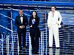 Carlo Conti, Lillo (Pasquale Petrolo) e Laura Pausini nella sarata del 25 febbraio del Festival di Sanremo 2026