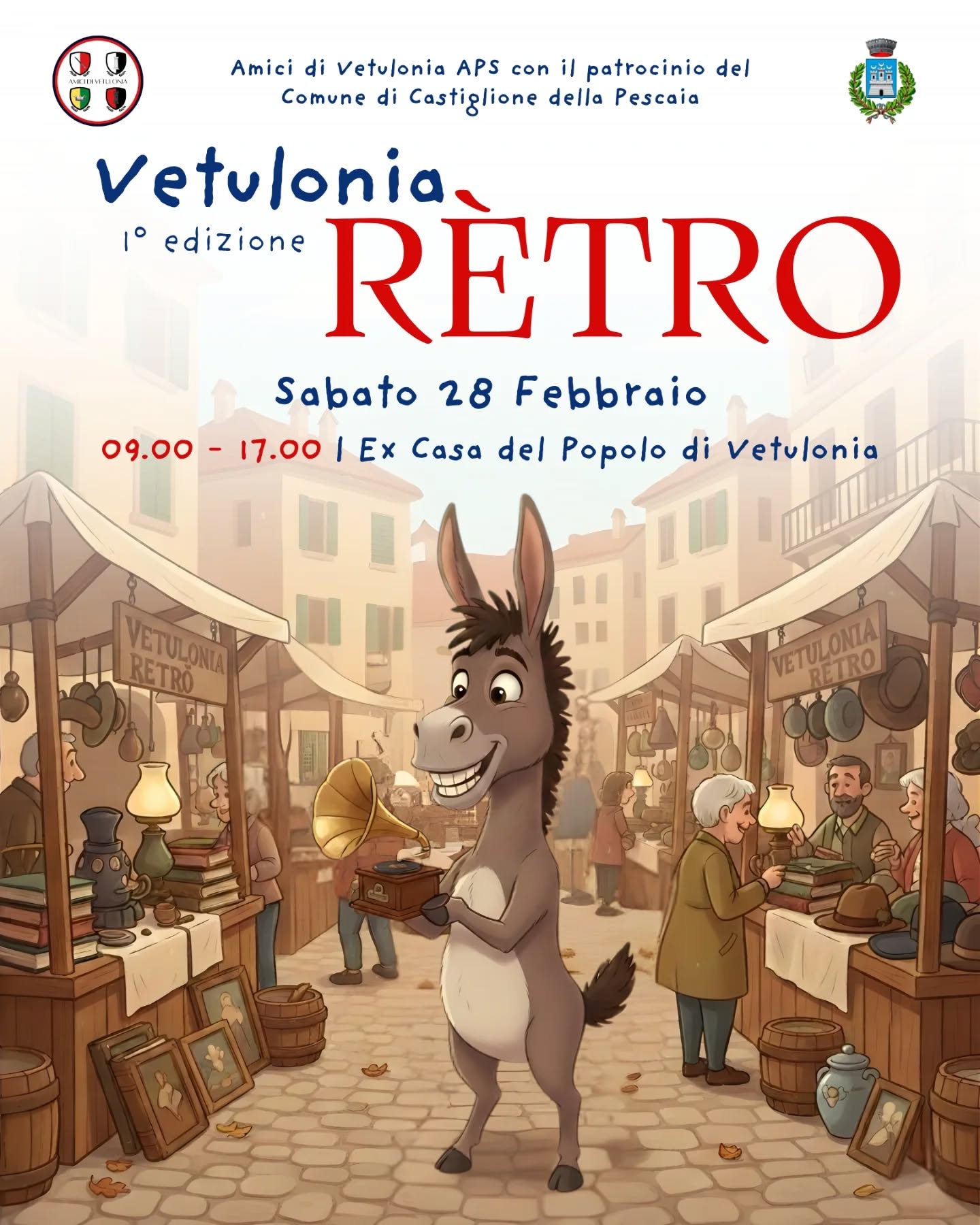 Sempre sabato, dalle 9:00 alle 17:00, la Ex Casa del Popolo di Vetulonia ospiterà la prima edizione di Vetulonia Rètro, una giornata interamente dedicata al vintage e alle curiosità d'altri tempi, organizzata dall'Associazione Amici di Vetulonia. Tra gli stand sarà possibile trovare vecchi vinili, libri d'epoca e oggetti da collezione. Un appuntamento pensato per collezionisti esperti e per chiunque ami il fascino del passato.