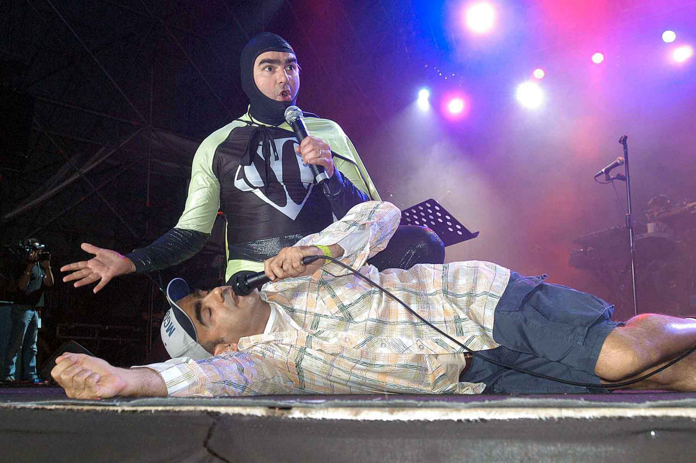 Elio e Mangoni di "Elio e le storie tese" nel 2005 all'Arezzo Wave Love Festival (Foto LaPresse)