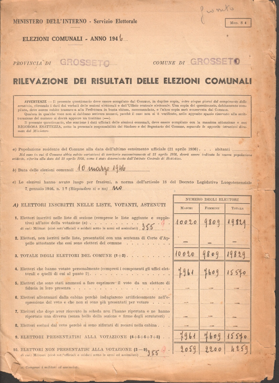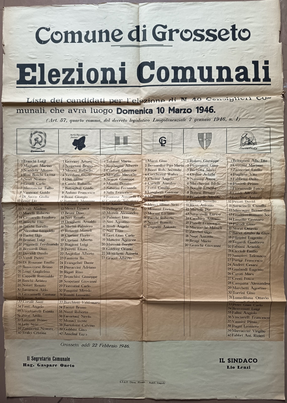 Il percorso espositivo ripercorre le elezioni amministrative del 10 marzo 1946 attraverso materiali originali di rara suggestione: