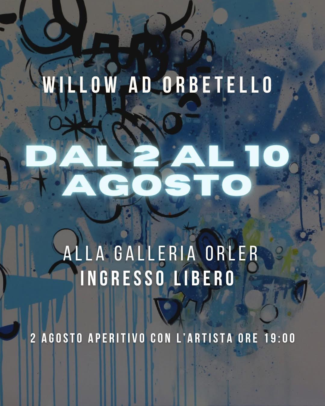 Orbetello si prepara ad accogliere uno degli appuntamenti artistici più interessanti dell’estate. Sabato 2 agosto, alle ore 19:00, la Galleria Orler inaugura una mostra personale dedicata a Willow, nome d’arte di Filippo Bruno, artista milanese tra i più originali e riconoscibili della scena contemporanea.