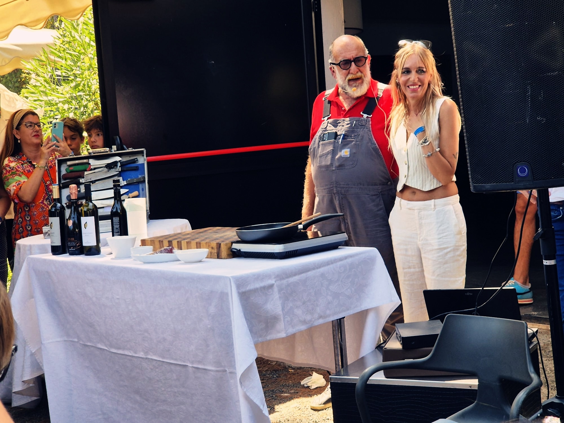 Il cuoco, davanti a quasi 300 persone, sciorinando i tormentoni che l'hanno reso celebre, ha preparato un soffritto di aglio e guanciale con l’olio evo del Frantoio Franci su cui ha cucinato straccetti di carne Wagyu Maremma sfumati con un vermentino GagiaBlu. E dopo lo show, un aperipranzo con i formaggi del Caseificio Il Fiorino, la bruschetta del Panificio 900 con l’olio del Frantoio Franci, la pasta di grani antichi La Toscanina con le verdure dell’azienda biologica Turini e il “sugo bianco” fatto con la carne Wagyu Maremma; per finire, straccetti di Maremmana e frutta a volontà, tutto accompagnato dai vini dell’azienda GagiaBlu.